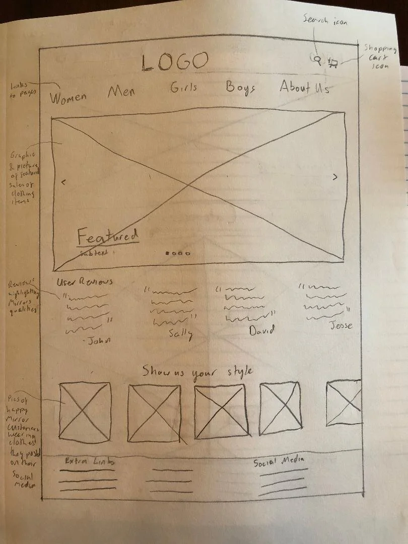 Mirror is a brick and mortar global clothing chain. They decided that it is finally time for them to adapt to the modern digital era. They need a responsive website to establish an online presence and sell clothing. Additionally, they need a new logo.